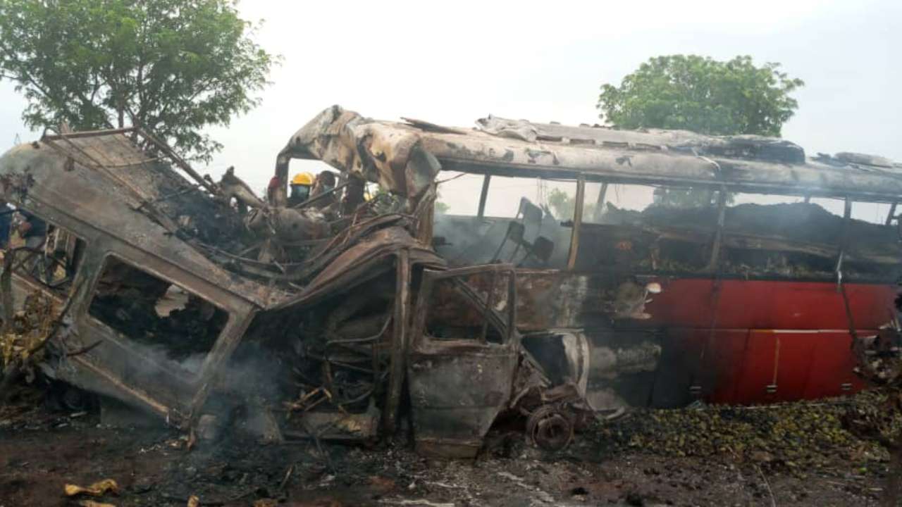 Kintampo-based Nkomode FM reports that both vehicles went up in flames after the crash and about thirty passengers have been burnt beyond recognition in the inferno, according to the local radio station.