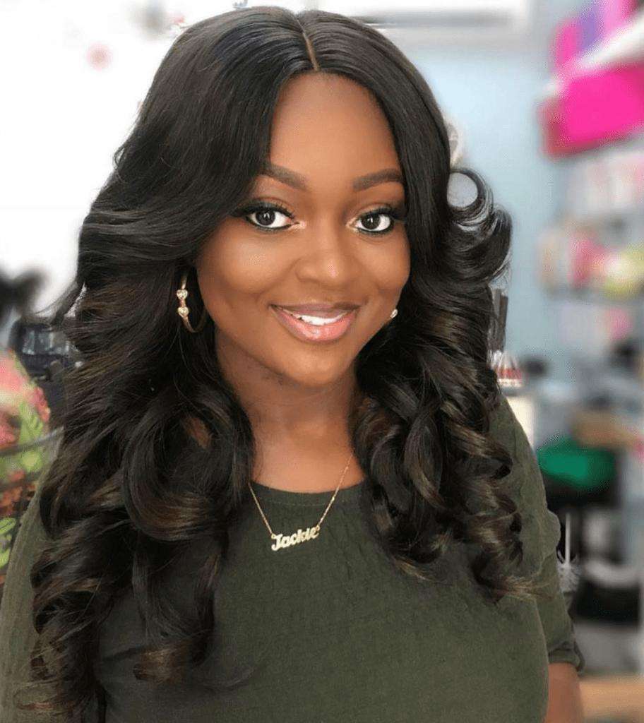 In the video, Jackie has a bump in front of her and can be seen caressing the bump