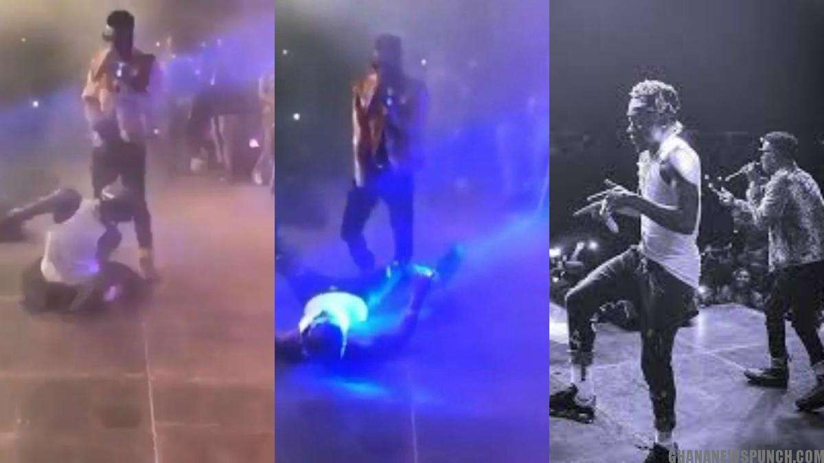 Ghanaian dancehall artiste Shatta Wale fainted on stage while performing with Kofi Kinaata. In a video circulating on social media shows that the two were having...