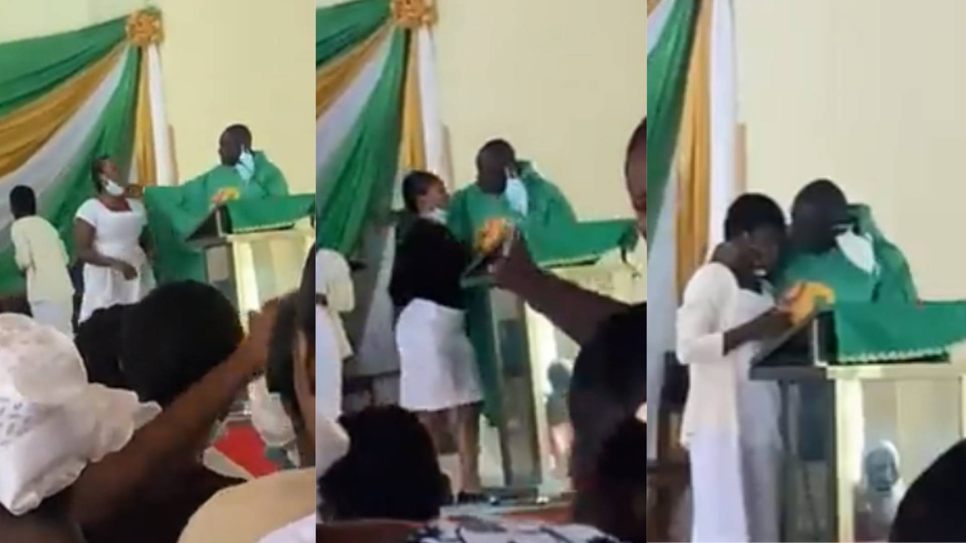 A Priest of the St Monica’s College of Education has been filmed kissing three female students and this has caused a stir on social media as a lot of people have come out to condemn his actions as it has been described as unbiblical.